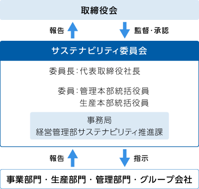 サステナビリティ委員会では、気候変動問題への取り組みなどの審議を行っており、委員会で決議された内容は取締役会へ報告する体制をとっています。