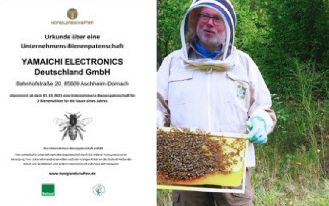 Yamaichi Electronics Deutschland(YED)では、多くの植物種の繁殖を支えるミツバチを保護すべく、2022年10月1日から養蜂会社の「Honiglandschaften」と提携し、2つのミツバチのコロニー(群れ)を支援しています。