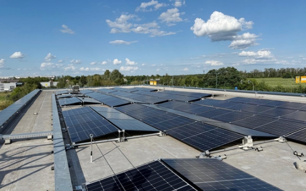 ドイツの生産拠点Yamaichi Electronics Deutschland Manufacturing GmbHでは、430W×1,432枚の太陽光発電パネルを2024年に新設しました。
