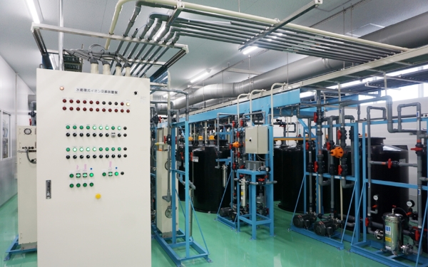 佐倉事業所におけるめっき設備からの廃水は、産業廃棄物として破棄する一部を除き、約6割を社内のリサイクル装置に送り再生利用しています。リサイクルされた廃水は再度めっきの製造に使われます。
